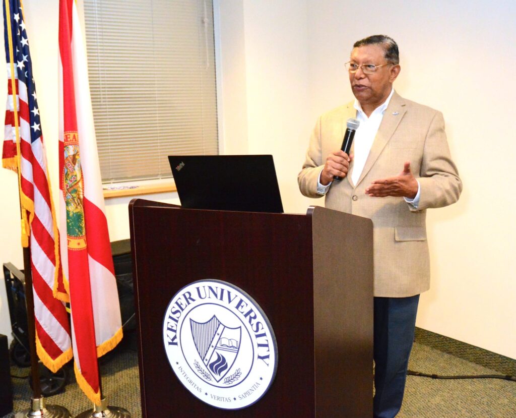 The event—designed as a platform for executive networking, historical insight, and professional development—was held at the modern facilities of Keiser University Miami Campus, led by Dr. Norma Pastor, with coordination by Carmen Pérez-Padrón, Director of Student Services and Career Development.