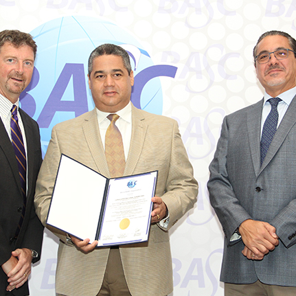 Además de Alma, la entrega de las certificaciones de BASC estuvo a cargo del encargado de negocios y jefe en funciones de la embajada de Estados Unidos en el país, David McNeill, así como el vicepresidente ejecutivo de la Cámara Americana de Comercio, William Malamud, miembro fundador y de la junta directiva de BASC.