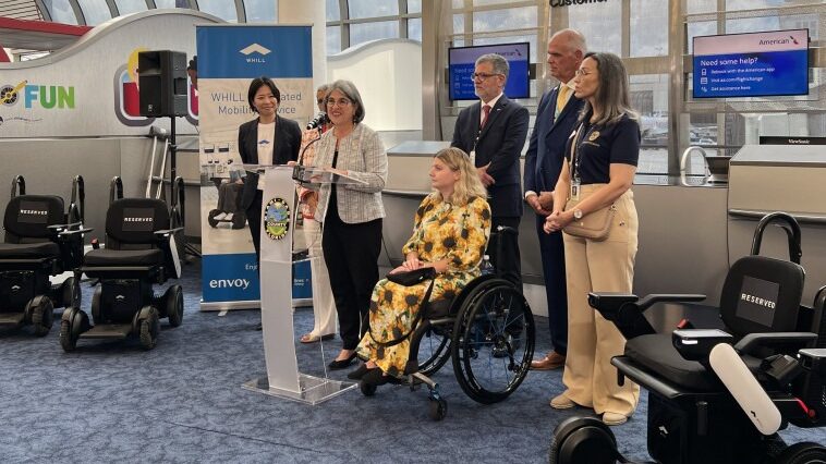 On June 25, Miami-Dade County Mayor Daniella Levine Cava and officials from American Airlines, Envoy Air, WHILL, Inc., and the Miami-Dade Aviation Department announced ten new autonomous power chairs that Envoy Air is now using to transport American Airlines passengers with limited mobility at Miami International Airport (MIA).