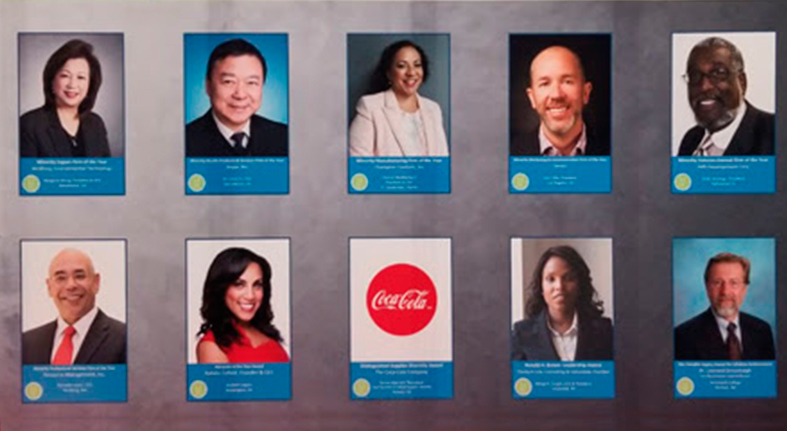 The Distinguished Supplier Diversity Award is presented to The Coca-Cola Company. The Coca-Cola Company is committed to ensuring that minority-owned businesses have access to opportunities throughout all of the tiers of the supply chain in every industry imaginable. In 2017, the company spent $675 million with diverse suppliers.
